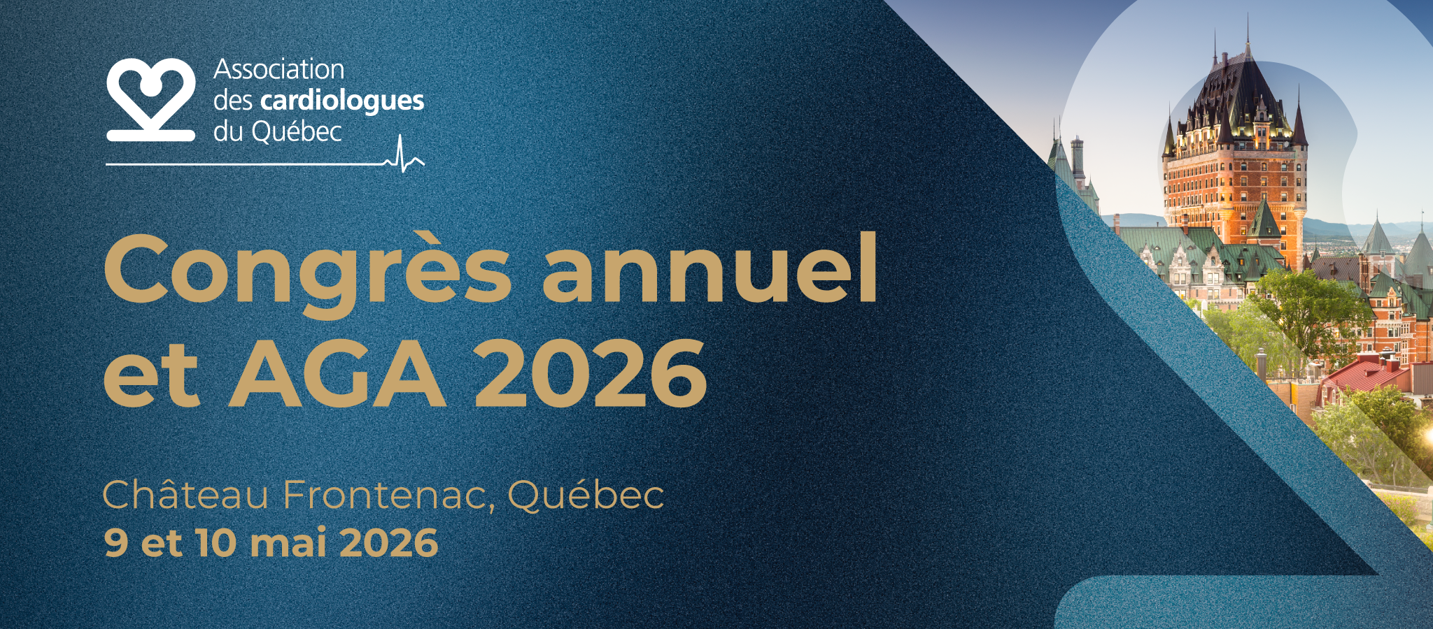 Nous avons le plaisir de vous convier à notre prochain congrès scientifique, qui se tiendra les 9 et 10 mai 2026, dans un cadre alliant confort, histoire et inspiration au Château Frontenac, de Québec.
